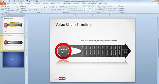 Very creative timeline design and value chain chart for Value Chain Analysis presentations that you can download for Microsoft PowerPoint presentations.