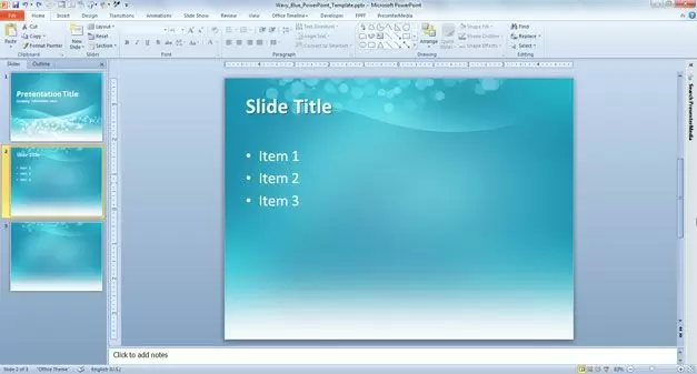 Wavy Blue PowerPoint Template is an original PowerPoint template and background for your presentations that you can download to make impressive designs with your PowerPoint and impress your audience. You can download free wavy PPT template with blue background for presentations as an abstract background. Free wavy PowerPoint template has a blur effect on the master slide and bubbles with circles flying on the template background.