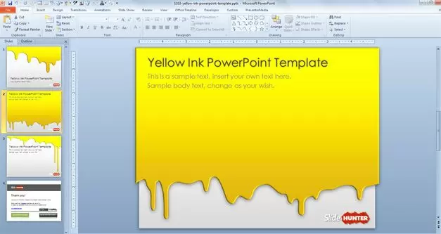 Free Yellow Ink PowerPoint Template is an original slide design for PowerPoint 2010 and Microsoft PowerPoint 2013 that you can download to prepare awesome PowerPoint presentations and Keynote with an abstract background for almost any presentation need but most suitable for topics related to ink, printing presentations, etc.