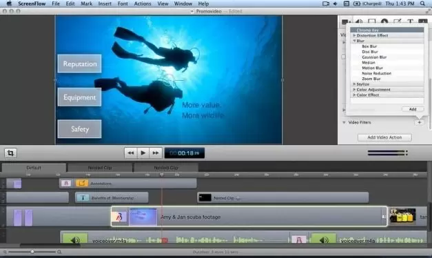 What makes ScreenFlow really outstanding is the fact that it brings recording, editing and sharing functionality within a simple interface that can be comprehended easily by intermediate and advanced computer users. You can even record your computer screen when capturing your video camera. The easy editing tools make it possible to manipulate your videos with images, background music, text and transitions to give your presentations, demos and tutorials a professional look. Hence, ScreenFlow can be an ideal tool for making screencasts for commercial use.
