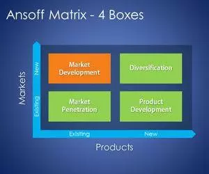 4 Boxes Ansoff Matrix Template for PowerPoint