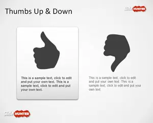 Free Thumbs Up & Down PowerPoint template lets you create presentations with thumb illustrations. Easily customize colors, use thumb symbols for approval or disapproval scenarios, and incorporate task lists.