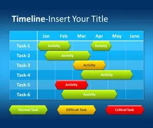 100% free simple 6-month timeline template for PowerPoint presentations with space to enter tasks in rows.