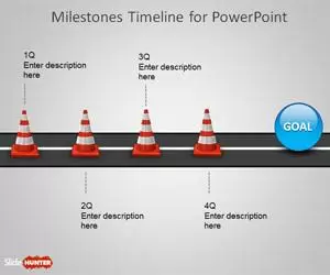 Editable milestones & roadmap shapes for PowerPoint with traffic cones and road metaphors.