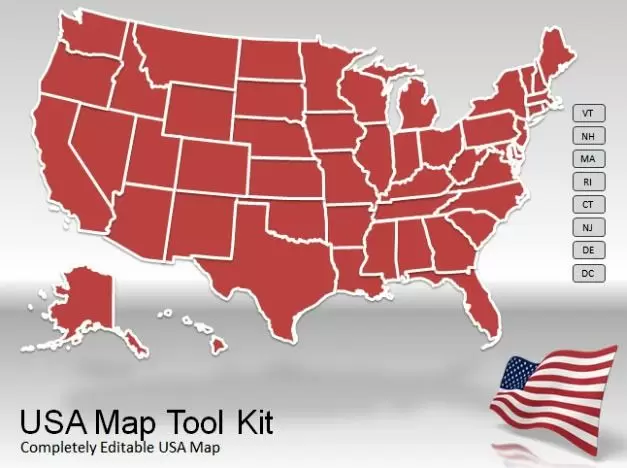 We have recently covered a number of map templates for PowerPoint, including the Widescreen World Map Toolkit, Canada Map Toolkit and the Europe Map Toolkt. Using such map templates can be quite useful for making business and academic presentations, which may require showing various geographical areas and their importance. If you require a similar template to show the map of the United States of America, then you should use the US Map Toolkit.