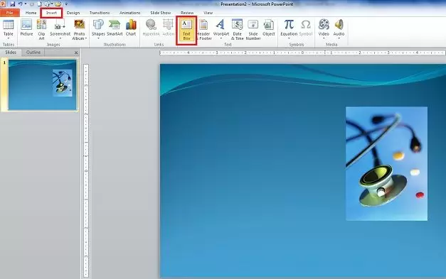 Open PowerPoint 2010 presentation and Insert your image or images on your PowerPoint slide.